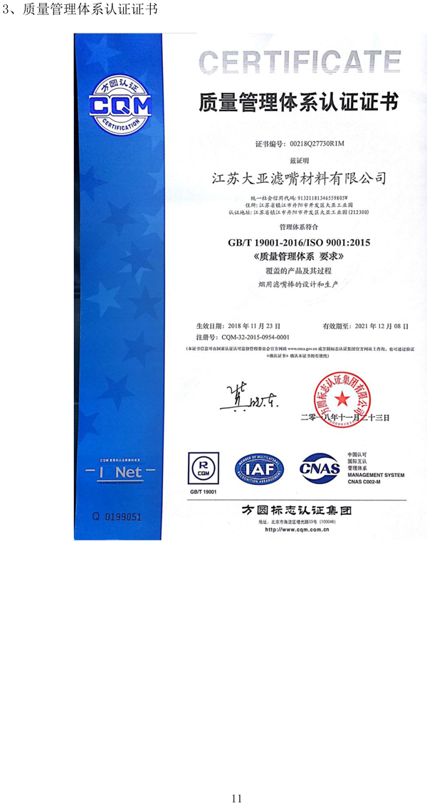 企业质量信用报告——江苏大亚滤嘴材料有限公司