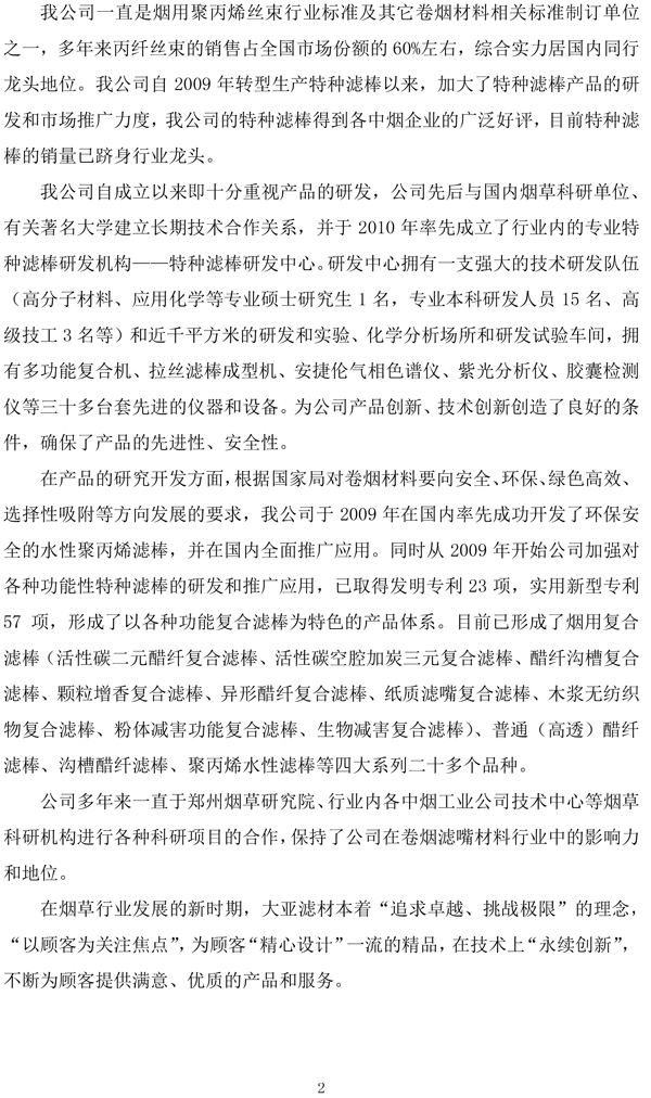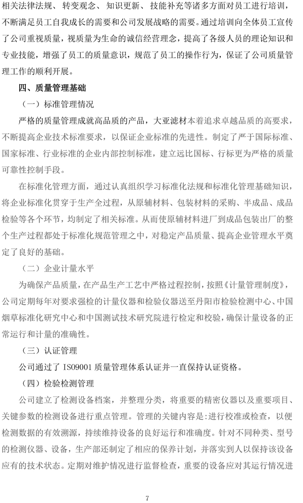 企业质量信用报告——江苏大亚滤嘴材料有限公司