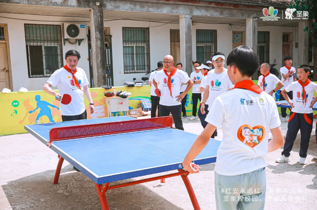 十周年之际,绿校园红安站对圣象来说更是一种激励,红安永远红,圣象永远新!圣象将贯彻新发展理念,企业唯有可持续发展才能积极承担社会责任!圣象将加快构建新发展格局,从地板的产品提供者到生活空间的方案服务商,构建全新的相互协同、齐头并进的六大业务线!圣象将以契合时代发展的新动能,携手爱心人士共同努力,让更多校园拥有更美好的学习生活环境,把更美好的关爱留给小朋友们,将真善美传遍祖国大地!用爱承载·美好生活!
