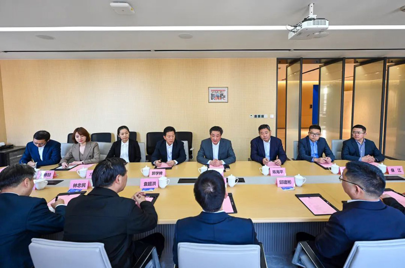 2023年2月7日下午,福建省副省长、南平市委书记林瑞良,市政府市长袁超洪一行莅临大亚圣象上海总部座谈交流。大亚圣象家居股份有限公司董事长、圣象集团董事长陈建军,大亚产业基金管理有限公司总裁陈海平,圣象华宇集团副董事长郭学婢等领导热情接待。